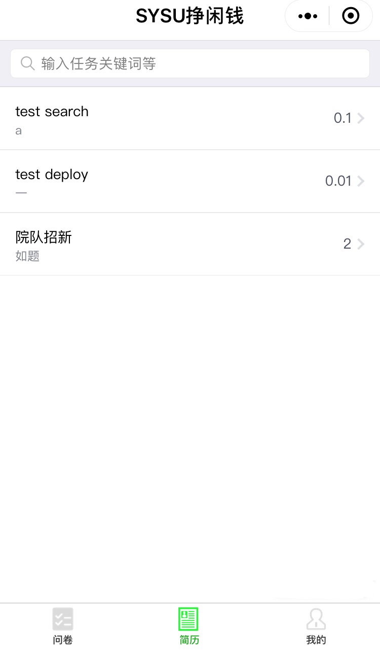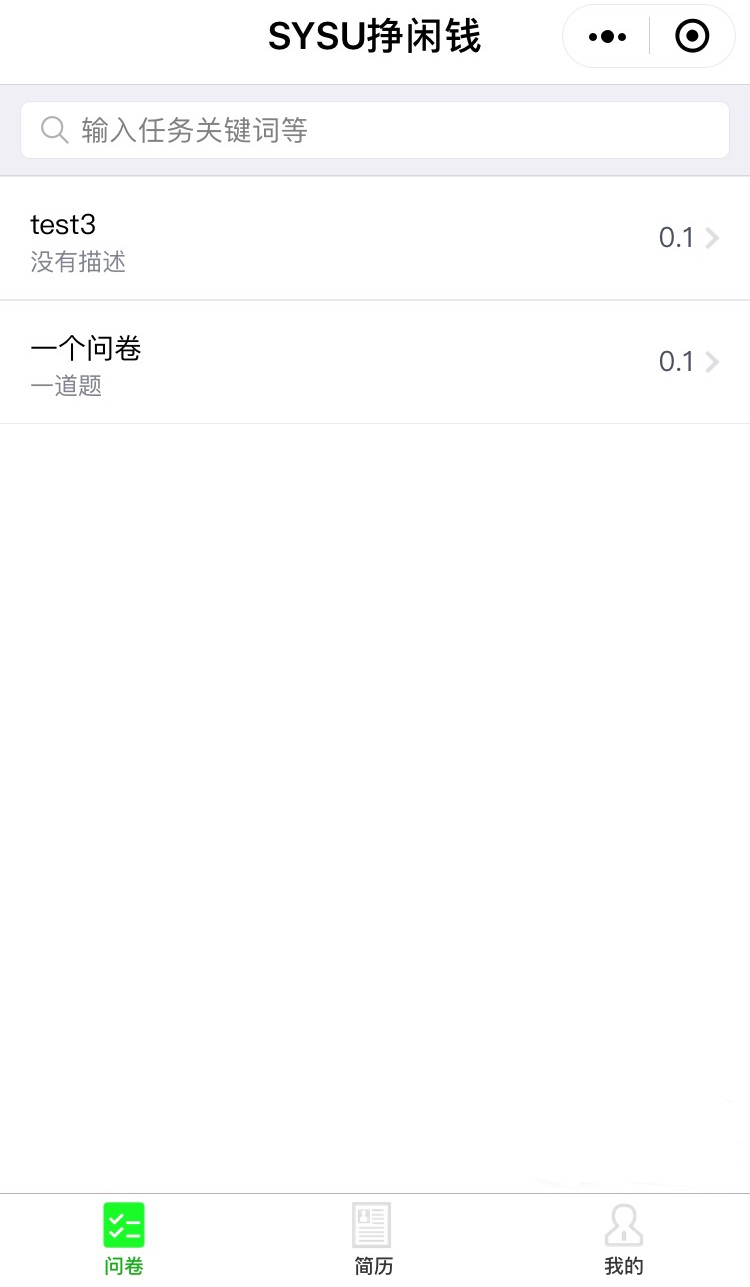 登录后可查看问卷列表、简历列表和个人主页